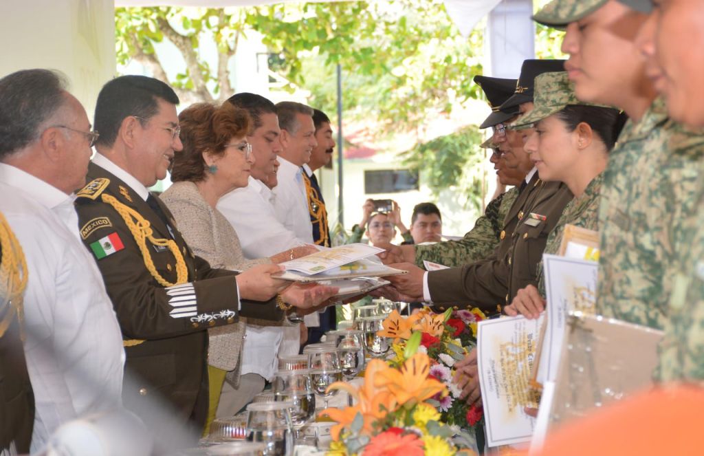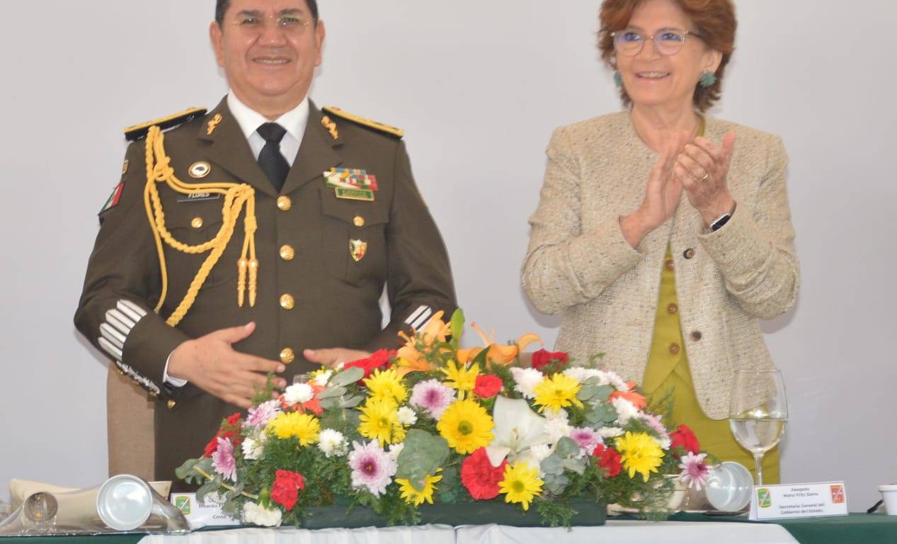Durante la ceremonia conmemorativa que presidió junto al Comandante de la X Región Militar, General de División Diplomado Estado Mayor (DEM), Ricardo Flores González, estuvieron presentes altos oficiales e integrantes de las fuerzas armadas y de seguridad de los tres niveles de gobierno, así como de instituciones de procuración e impartición de justicia.