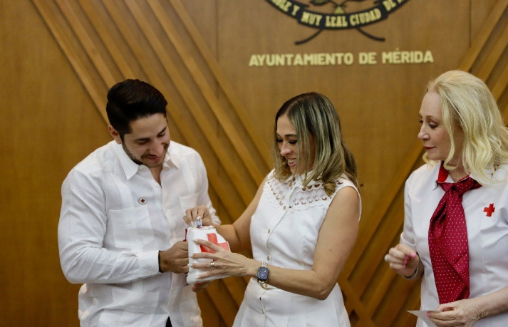 En rueda de prensa realizada en el Salón de los Retratos del Centro Cultural Olimpo, acompañada de Mario Molina Esquivel, Presidente de la Cruz Roja Mexicana Delegación Mérida; Michelle Byrne de Rodríguez, Consejera y Delegada Estatal de la Cruz Roja Mexicana; Armando Casares Espinosa, Subdelegado Estatal de Cruz Roja Mexicana; y Silvia Sarti González, Directora del DIF Mérida, agradeció el trabajo colaborativo entre el Municipio y la Cruz Roja, misma que se ha traducido en cursos de capacitación o firmas de convenios.