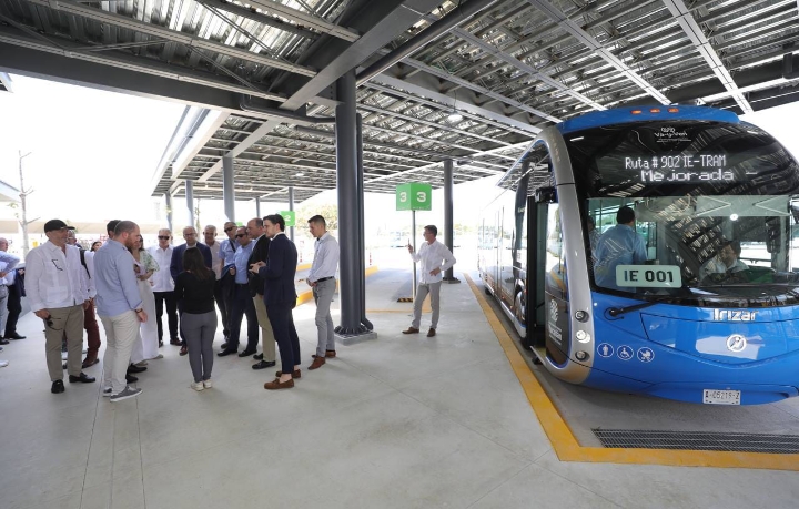 Durante su visita, los empresarios observaron el abordaje a las unidades del Ie-Tram que actualmente abarca las rutas de Paseo 60-La Plancha-Teya y Mejorada-La Plancha-Kanasín, sumándose el próximo 1 de abril la ruta La Plancha-Facultad de Ingeniería y La Plancha-Umán, que arrancará el 1 de mayo.