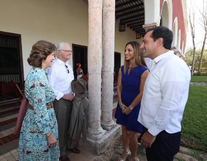Junto a su esposa María Eugenia Ortiz Abraham, el Gobernador, los monarcas, el Ministro de Cooperación Internacional para el Desarrollo de Suecia, Johan Forssell; el embajador de Suecia en México, Gunnar Aldén, y la secretaria General de Gobierno del Estado de Yucatán, María Dolores Fritz arribaron a la Hacienda donde fueron recibidos por los integrantes de Trovanova “Los Trovadores de Yucatán”, quienes amenizaron la llegada de los Reyes al recinto.