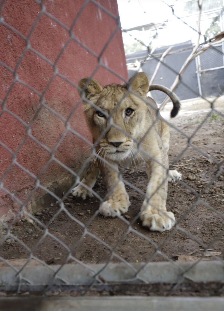 «El macho juvenil tiene aproximadamente 2 años de edad, apenas empieza a desarrollar la melena propia del macho y conserva aún cicatrices en el cuello que le dejó la cadena con la que su dueño lo mantenía amarrado en su domicilio», mencionó.