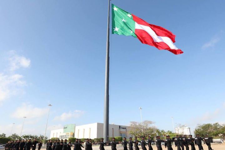 Mérida, Yucatán 16 de marzo de 2024.-Para conmemorar 183 años desde la primera vez que nuestro símbolo distintivo como entidad fue izado un 16 de marzo de 1841, manteniendo vivo nuestro patrimonio cultural y la historia del pueblo yucateco, la bandera de Yucatán volvió a ondear, en la asta bandera monumental de la salida a Progreso.