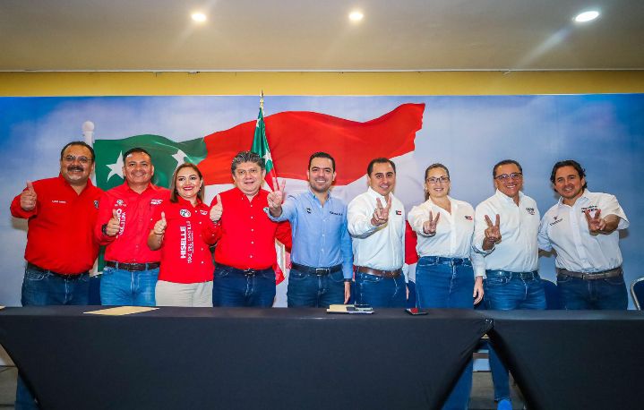 En rueda de prensa, las y los candidatos a legisladores federales de esta coalición en Yucatán, acompañados de los presidentes estatales, Asis Cano Cetina del PAN y Gaspar Quintal Parra del PRI, orientadas a fortalecer las instituciones, así como la seguridad y el sistema de salud.