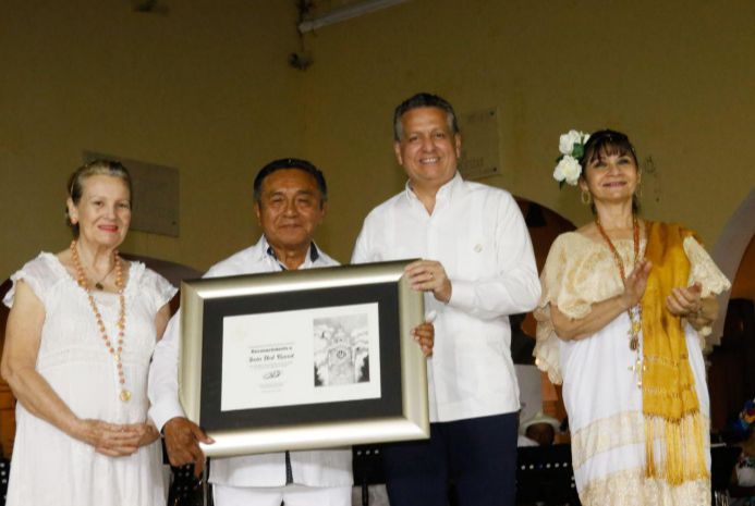 «Y en ese marco, esta noche entregamos la medalla «Chan Cil» al trovador Juan Hoil Kumul, quien con 55 años caminando al lado de este género musical, ha colocado el nombre de Mérida al lado de las letras de las canciones que siguen interpretándose para deleite de nuevas generaciones», expresó.