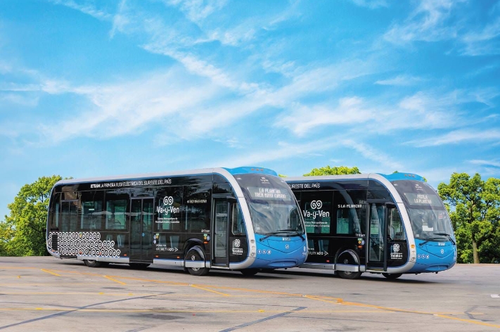 De igual forma, con el Ie-Tram, transporte público 100% eléctrico y único en su tipo en Latinoamérica, ya se encuentra funcionando en el estado con las rutas Paseo 60-La Plancha-Teya y Mejorada-La Plancha-Kanasín; y muy pronto se sumarán las de La Plancha-Facultad de Ingeniería y La Plancha-Umán.