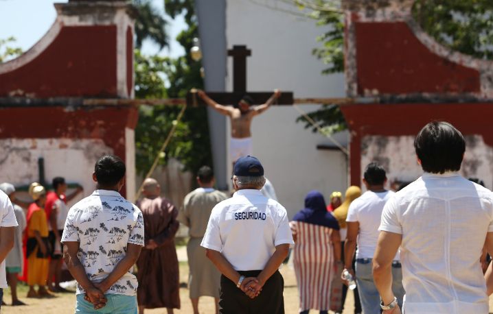 Mérida Yucatán a 29 de marzo de 2024.- Personas Privadas de la Libertad (PPL) en el Centro de Reinserción Social (Cereso) de Mérida escenificaron los últimos momentos que vivió Jesucristo en su camino a la cruz.