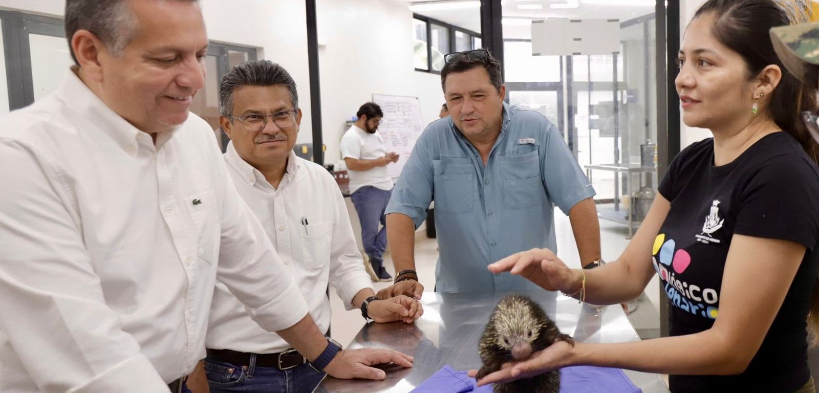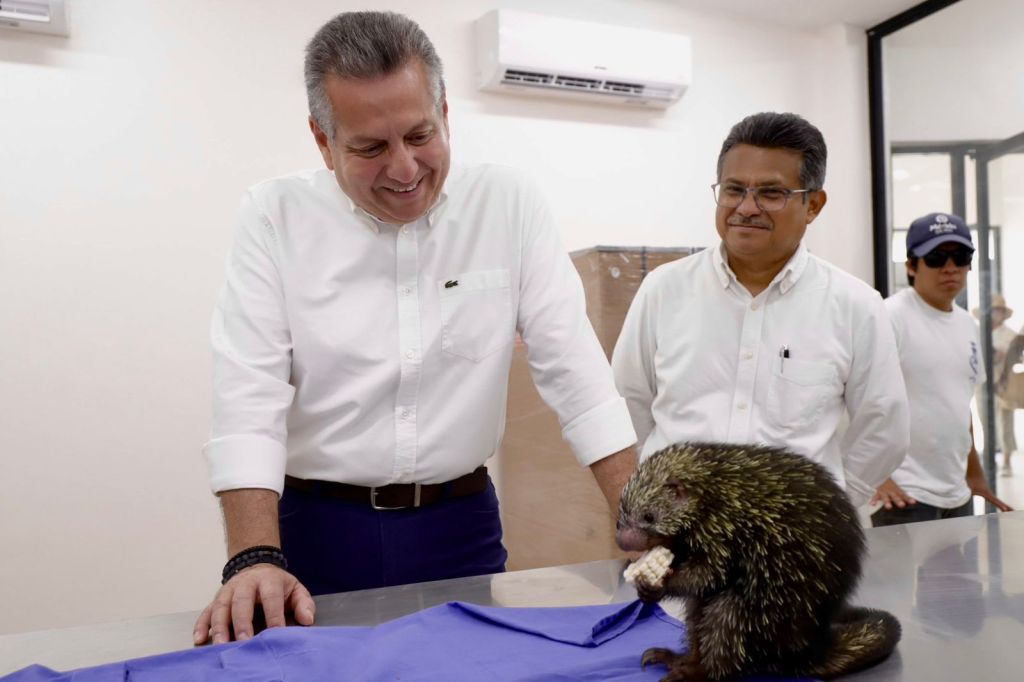 Acompañado del director de Servicios Públicos Municipales, José Collado Soberanis, el Alcalde constató el funcionamiento del equipo de monitoreo de signos vitales, probado con un ejemplar de puercoespín.
