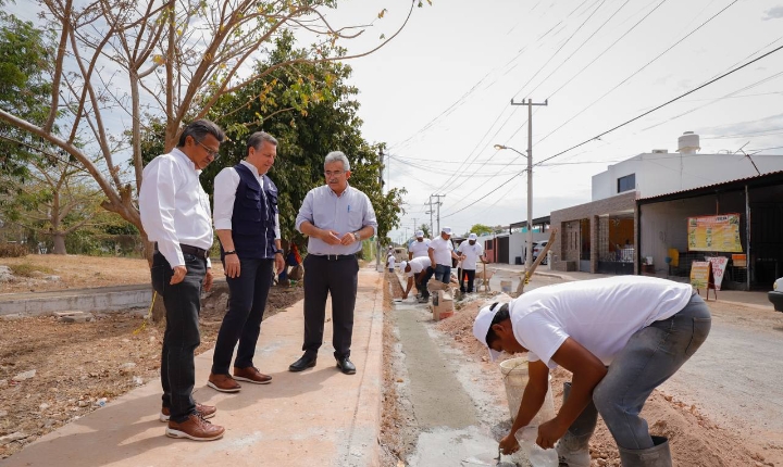 El Alcalde Alejandro Ruz Castro supervisa trabajos en el fraccionamiento Tixcacal Opichén.