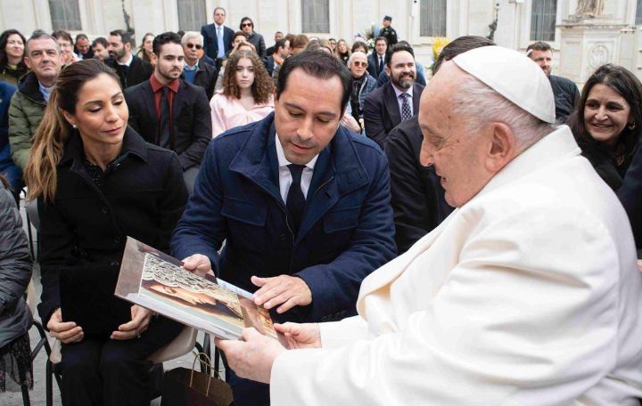 En ese marco, Vila Dosal obsequió al Santo Padre un ejemplar del libro “Nuestra Señora de Izamal. Reina y Patrona de Yucatán” de la autoría de Stella María González Cicero, obra que habla de la historia de la venerada Virgen de la Ciudad de las Tres Culturas y contiene ilustraciones y fotografías auténticas en el Convento de San Antonio de Padua de esa población del estado.