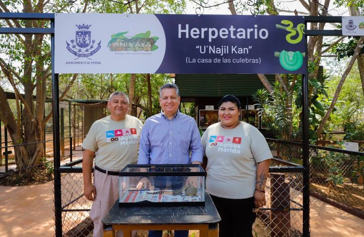 Mérida, Yucatán, 20 de abril de 2024.- Una de las secciones más concurridas del Parque Zoológico del Bicentenario «Animaya» es el herpetario rústico U’Najil Kan (La casa de las culebras), un espacio que ha sido objeto de mejoras por parte del Ayuntamiento que encabeza Alejandro Ruz Castro, para brindar mayor comodidad y satisfacción a los amantes de la naturaleza.