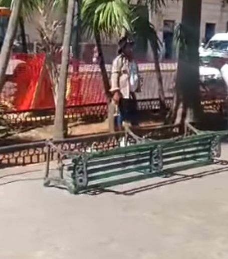 Mérida, Yucatán, 22 de abril de 2024.- Como parte de la rehabilitación que realiza el Gobierno del Estado en la plaza principal, el Ayuntamiento de Mérida retiró para su resguardo todo el mobiliario y equipamiento que se encontraba en ese espacio, incluyendo las bancas de madera de color verde y las sillas confidentes, comúnmente conocidas como «tú y yo».
