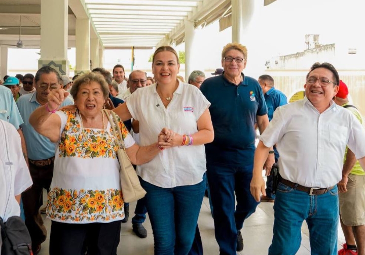En la presentación estuvo acompañada de líderes de locatarios a quienes, en un recorrido por los mercados Lucas de Gálvez y San Benito, les expresó su apoyo para trabajar en equipo y darles un nuevo rostro a estos espacios que contarán con nuevas calles y andadores que conecten los portales, el parque Eulogio Rosado y sus alrededores.