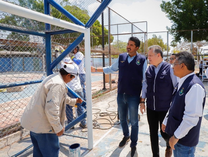 En el parque «Lic. José Vasconcelos» ubicado en la colonia Bojórquez, los trabajadores municipales realizaron un trabajo simultáneo. En este sitio, también se rehabilitaron las canchas de fútbol rápido y básquetbol y se verificó minuciosamente toda la instalación eléctrica de las luminarias y se cambiaron algunas lámparas.