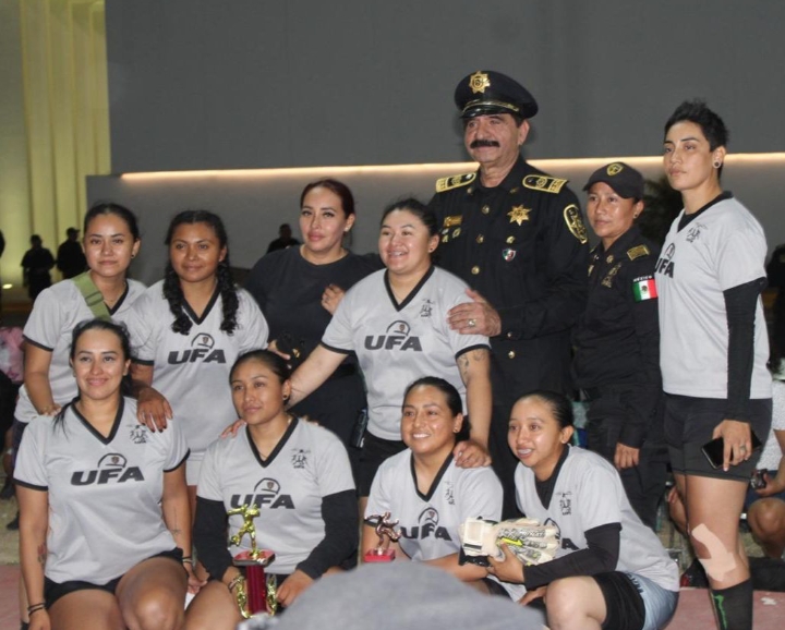 La ceremonia incluyó la premiación a los líderes de goleo femenil y varonil. Recibieron su trofeo la policía tercero Clara Alicia Canul, de la Unidad Femenil y el policía tercero Francisco Mora, de Periférico.