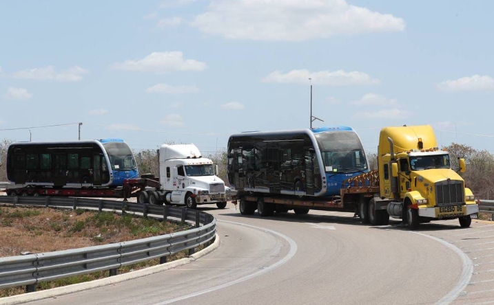 -Este día llegaron desde España a territorio estatal otras 6 nuevas unidades que se utilizarán para las rutas La Plancha-Umán y La Plancha-Umán (Estación del Tren Maya)
