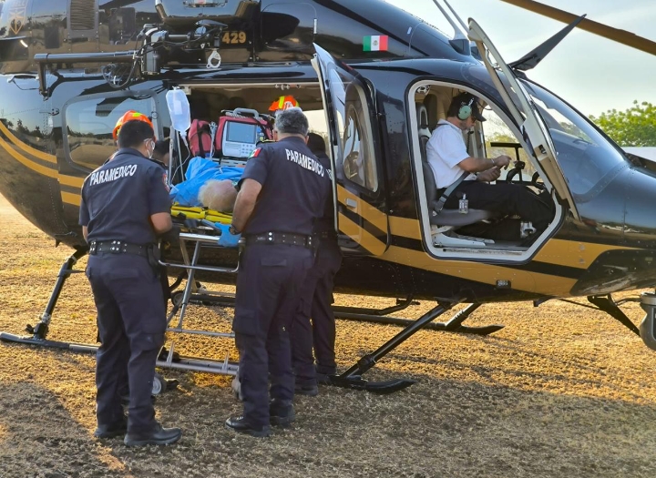 fue trasladado de Tekax a Mérida en el helicóptero Bell 429 de la Secretaría de Seguridad Pública.