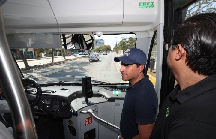 En su paso, constató las obras que se realizaron en este trayecto, que van desde banquetas y guarniciones, así como iluminación, señalética e instalación de paraderos para estos nuevos autobuses.