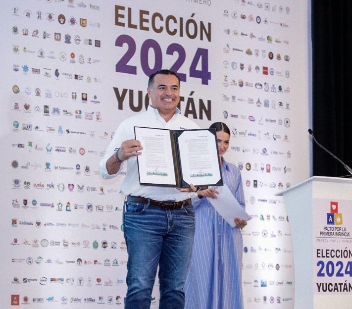 Mérida Yucatán a 06 de mayo de 2024.- «Vamos a poner énfasis en la atención multidisciplinaria, oportuna y gratuita a la primera infancia a través de la apertura de nuevos Centros de Orientación para la Primera Infancia», afirmó el candidato común a la gubernatura del estado por el PAN, PRI y Nueva Alianza, Renán Barrera Concha, durante la firma del Pacto por la primera infancia «Empieza por lo primero».