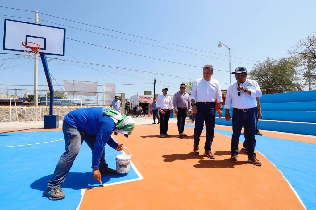 El Alcalde Alejandro Ruz Castro supervisa los trabajos realizados en la unidad deportiva de la colonia Ampliación Revolución Cordemex.