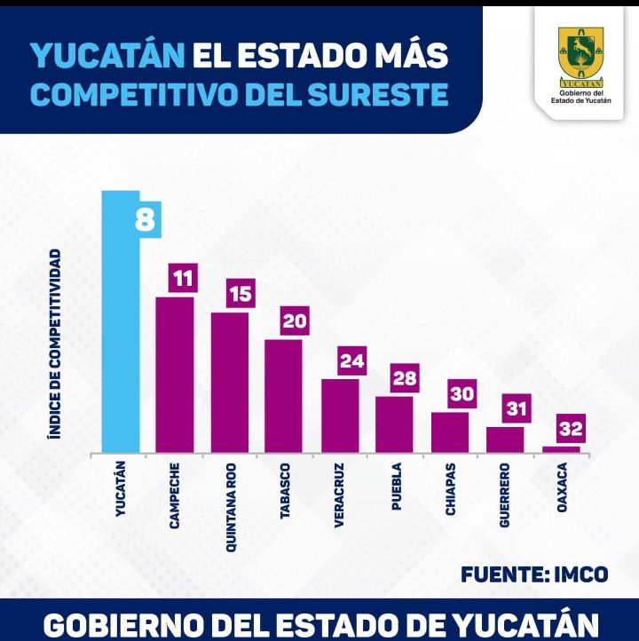 -La entidad se colocó como las más competitiva del sureste del país, además de ser uno de los tres Estados más competitivos en los que se realizarán elecciones este año, informó Instituto Mexicano para la Competitividad (IMCO).