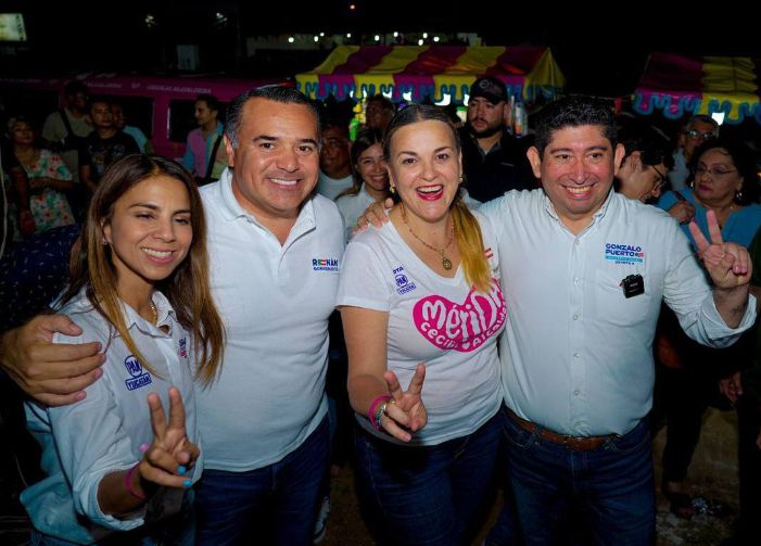 Durante el cierre de campaña del Distrito 8, estuvo acompañada también de los candidatos Katia Bolio, a senadora; Isabel Rodríguez, a diputada federal por el Distrito 4, y Gonzalo Puerto, diputado local, así como integrantes de la planilla por Mérida.
