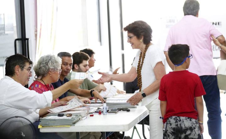 -La Encargada del Despacho del Gobernador, María Fritz Sierra, acudió a emitir su voto.