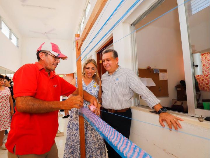 Durante la supervisión, Ruz Castro, en compañía de su esposa y Presidenta del DIF Mérida, Verónica Cetina Arjona, también visitó las instalaciones del Centro de Desarrollo Integral (CDI) de San Antonio Kaua II, donde saludó a las usuarias que en esos momentos se encontraban urdiendo hamacas.