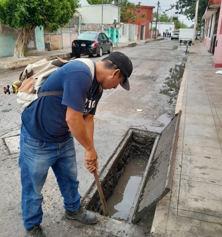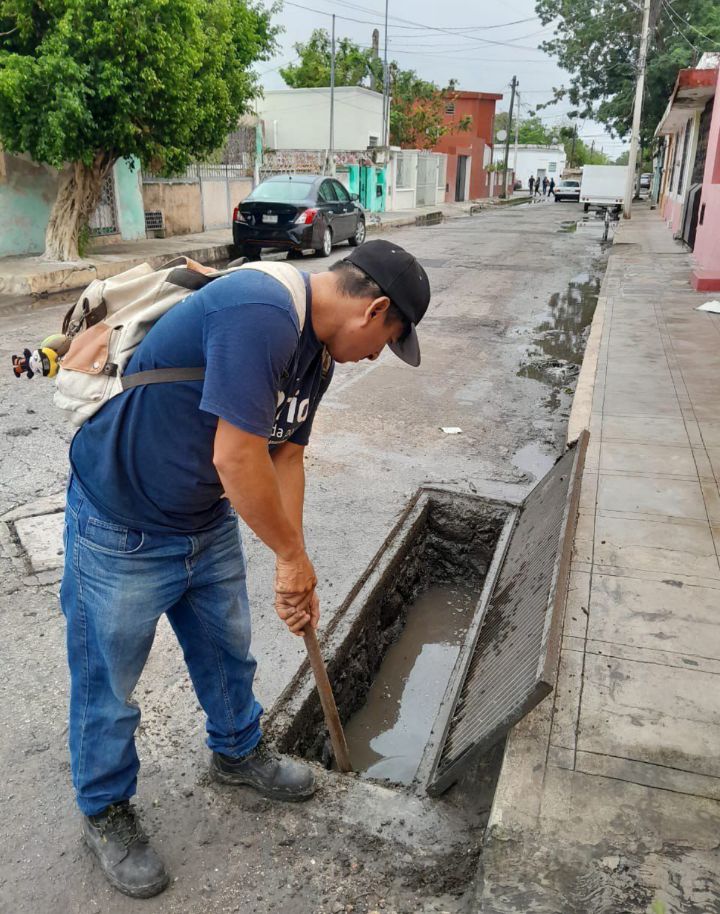 Ante las copiosas precipitaciones pluviales de los últimos días que son consecuencia del Potencial Ciclón Tropical Uno, el personal municipal realizó las labores preventivas en el sistema colector de lluvia en el municipio, como la limpieza de las rejillas y el desazolve de pozos para evitar los encharcamientos en la ciudad y comisarías.