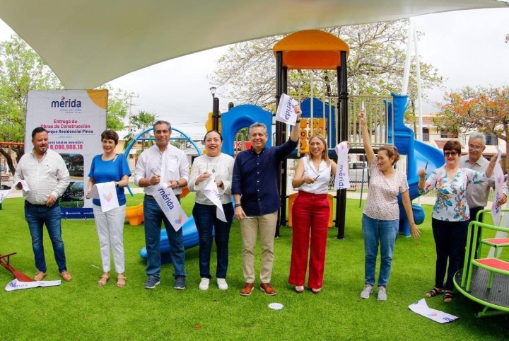 Mérida, Yucatán, a 24 de junio de 2024.- Como resultado de la participación ciudadana en la construcción de espacios que promuevan la armonía y la paz social, el Alcalde Alejandro Ruz Castro entregó los trabajos de rehabilitación del parque del fraccionamiento Los Pinos, donde se incluyeron los elementos urbanos que atenderán las necesidades de las y los vecinos de la zona.