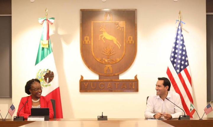 En el encuentro, donde también participaron el jefe de la Sección Consular, Jacob Grannell, y titulares de dependencias del Gobierno estatal, Vila Dosal y la diplomática hablaron sobre las acciones que se han realizado en equipo con el Consulado estadounidense los últimos 3 años para procurar el desarrollo de Yucatán.