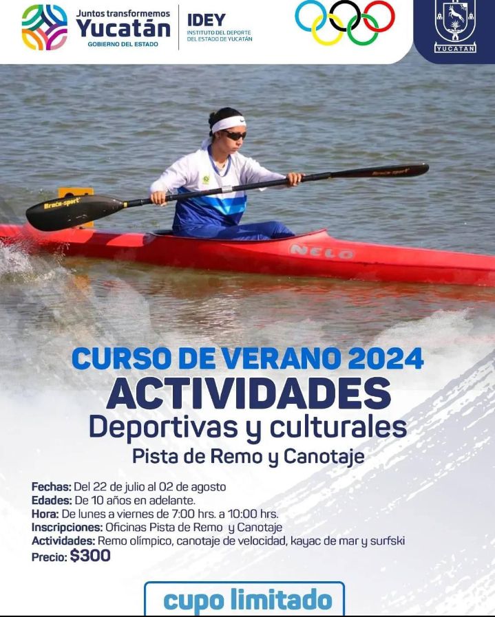 De igual manera, en la Pista de Remo y Canotaje del municipio de Progreso se ofrecerán dichas actividades para menores de 10 años en adelante a partir del 20 de julio al 2 de agosto en un horario de 7 a 10 de la mañana.