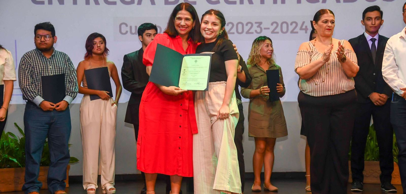 A su vez, Gilda Arzet Rihani Gazque, coordinadora de Formación Integral y Capacitación Laboral de la SEGEY, reconoció la labor de las y los maestros de la Academia, quienes tienen un alto conocimiento y compromiso por formar a las y los egresados en el dominio correcto del idioma inglés.