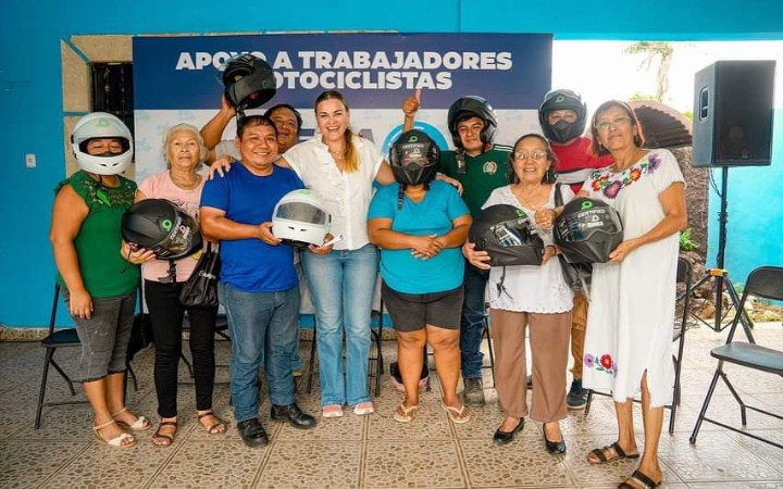 “Llega seguro” busca proteger a las y los meridanos que utilizan la motocicleta como herramienta de trabajo, informó la alcaldesa electa, Cecilia Patrón Laviada, durante la entrega de cascos con certificación DOT.