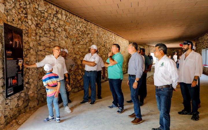 Acompañado de Renán Barrera Concha, Alcalde con licencia y principal impulsor de la construcción del felinario, el Presidente Municipal realizó una visita de supervisión en este sitio para verificar los avances de la obra que tiene una superficie de 16 mil 800 metros cuadrados y una inversión de 58 millones 549 mil 583.53 pesos.