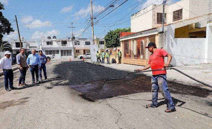 El Alcalde Alejandro Ruz Castro supervisó el mejoramiento de casi un kilómetro de vialidades en la colonia San Vicente Chuburná.