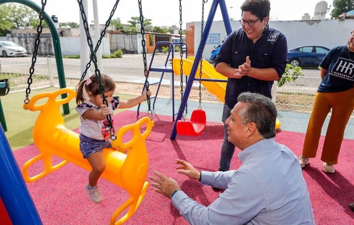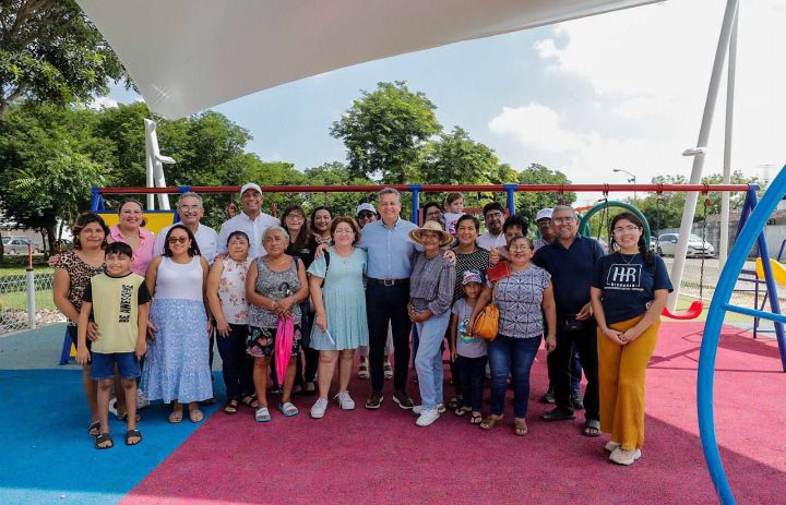 El parque “Vecinitos”, ubicado en la calle 70 entre 39-A y 74-A del fraccionamiento Ciudad Caucel, tiene un 90% de avance y es un ejemplo de la inversión en espacios públicos que fomentan el tejido social y la convivencia vecinal.