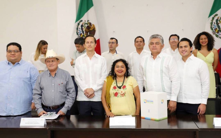 Por instrucciones de Fritz Sierra y en cumplimiento a lo dispuesto por la Ley, el encargado del Despacho de la Secretaría General de Gobierno (SGG), José Carlos Puerto Patrón y el Consejero Jurídico del estado, Yussif Heredia Fritz, entregaron a la presidenta de la Mesa Directiva de la actual legislatura, Neyda Pat Dzul, el documento que además de la versión en español también está en lengua maya y Braille.