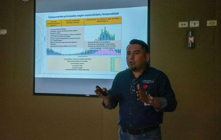 Por su parte, el Director de Prevención y Protección de la Salud, Carlos Isaac Hernández Fuentes, detalló en los encuentros que se llevaron a cabo del 9 al 12 de septiembre en la Ciudad de México y Mérida, se presentó la estrategia utilizada en Yucatán para el control del brote de dengue en 2023.