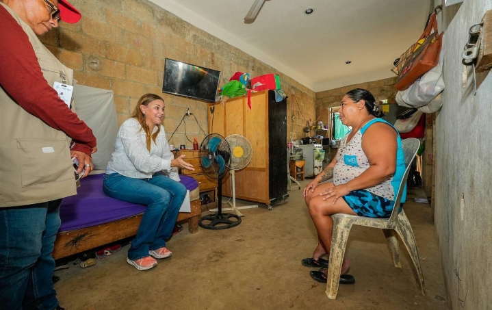 En esta ocasión, la Alcaldesa visitó a Karla Orozco, quien tiene tres hijas y fue beneficiada con la construcción de un techo para tres piezas y un baño; también a Francisco Kantún, a quien construirán una recamara con baño, y a María Soberanis y su esposo José Chan, que tienen dos hijos, uno con discapacidad intelectual y dos nietos huérfanos de mamá, a ellos se benefició con un techo y se está haciendo un baño.