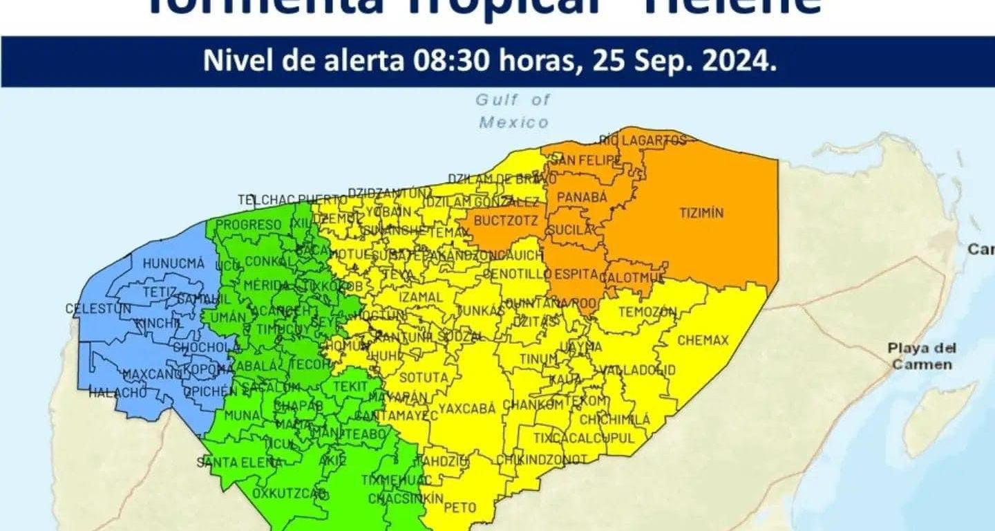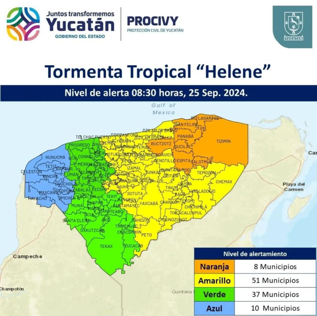 Ante la presencia de la Tormenta Tropical #Helene, el Sistema de Alerta Temprana para Ciclones Tropicales, ha emitido #AlertaNaranja en la zona este del Estado de #Yucatán.