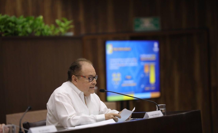 Mérida, Yucatán, 26 de septiembre de 2024.- Como parte de la segunda jornada de comparecencias relativas al Sexto Informe de Actividades del Gobierno estatal, el titular de la Secretaría de Fomento Económico y Trabajo (SEfOET), Ernesto Herrera Novelo, expuso las acciones implementadas desde esa dependencia ante diputadas y diputados del Congreso local integrantes de la LXIV Legislatura.