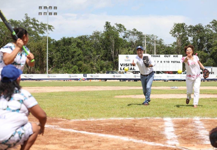 En ese marco, Fritz Sierra y Vila Dosal encabezaron el lanzamiento de la primera bola, junto con el alcalde anfitrión, Genri Alberto Pacab Herrera, y la capitana del equipo, Sitlali Poot Dzib.
