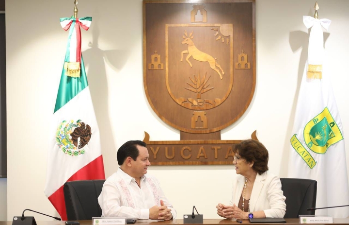 Mérida, Yucatán, 30 de septiembre de 2024.- La encargada del Despacho del Gobernador, María Fritz Sierra, en funciones del titular del Poder Ejecutivo y el Gobernador electo, Joaquín Díaz Mena, encabezaron este día la entrega-recepción constitucional de la administración pública estatal, con lo que concluyó dicho proceso.