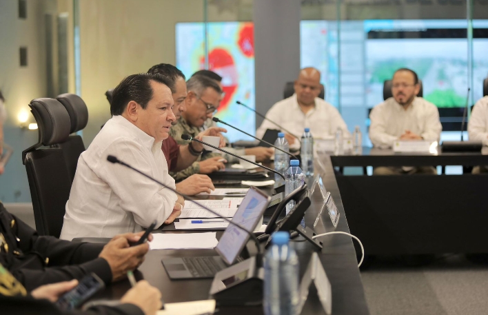 Durante la sesión extraordinaria del Comité de Emergencias, el Gobernador del Estado, Joaquín Díaz Mena, hizo un llamado desde el Centro de Monitoreo del C5i de la SSP, en donde se mantiene una estrecha vigilancia del fenómeno meteorológico, a mantenerse informados y atentos a los avisos de las autoridades, recordando que la prioridad es la seguridad de todos, y la prevención es nuestra mejor herramienta.