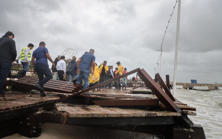 Finalmente, acompañado del alcalde local, Erik Rihani González, así como de autoridades de la Marina y Sedena, Díaz Mena recorrió el famoso «Muelle de Chocolate» para constatar el daño que sufrió este importante atractivo turístico, emblema de esta localidad costera.