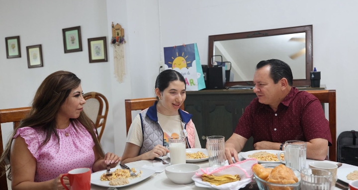 Junto a su madre, Maribel Muñoz Escalante, Majo preparó el desayuno y puso la mesa para recibir la visita del Gobernador y la presidenta del DIF Yucatán quienes, a lo largo del desayuno, escucharon a la señora Maribel detallar la necesidad de atención médica de su hija.