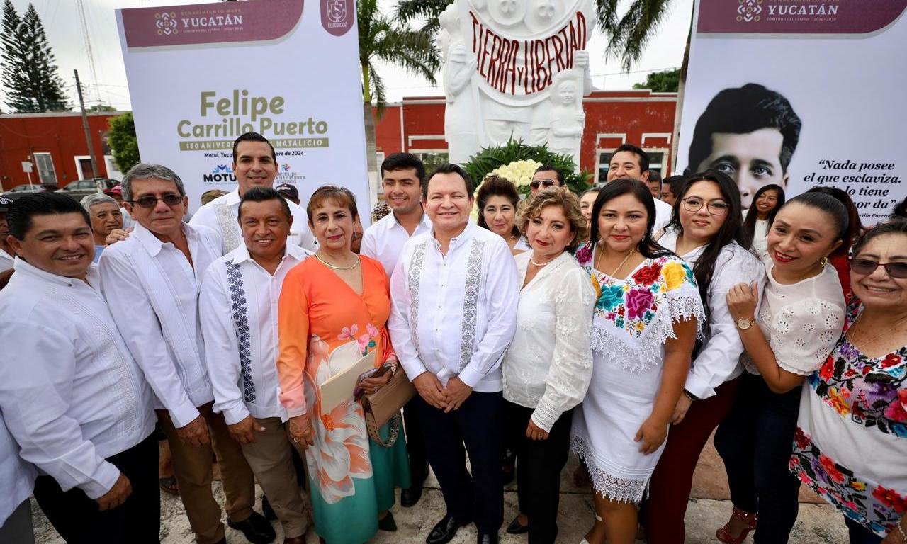En el homenaje celebrado en el parque principal de Motul, tierra natal de Carrillo Puerto, el Gobernador llamó a la sociedad yucateca a impulsar, con dignidad y esperanza, el Renacimiento Maya como una oportunidad de prosperidad compartida construida desde la identidad yucateca y que genere oportunidades que disminuyan la brecha de desigualdad, para dar paso a los mejores años de un Yucatán con bienestar.
