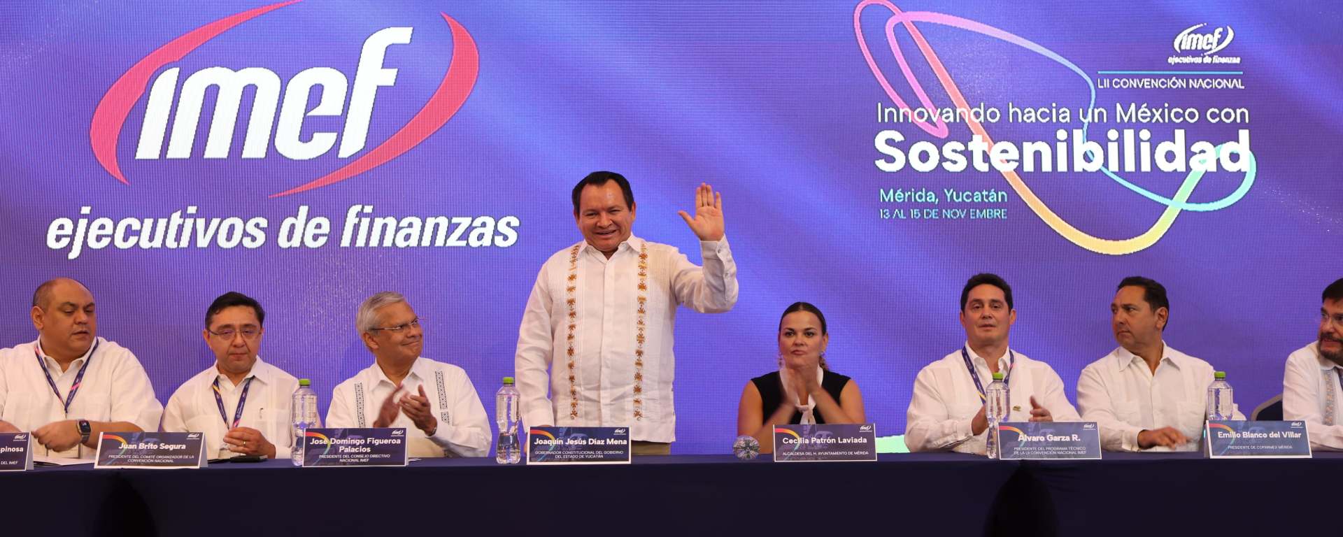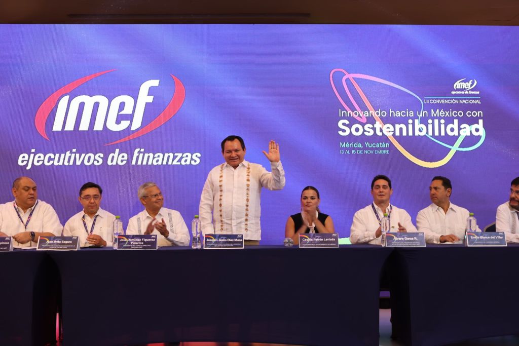 El Gobernador Joaquín Díaz Mena realizó la declaratoria inaugural de la 52ª Convención Nacional del Instituto Mexicano de Ejecutivos de Finanzas (IMEF), uno de los eventos más importantes del ámbito financiero de México, en el que se exploran temas trascendentales como la innovación y la sostenibilidad, los cuales pueden ser motores para el crecimiento económico, social y financiero de Yucatán, así como del país.