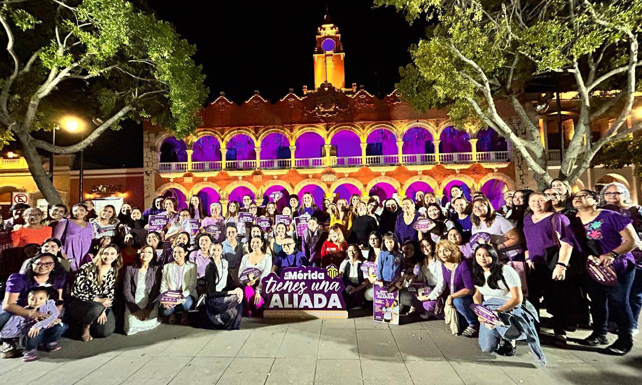 Como muestra de su compromiso por la erradicación de la violencia contra las mujeres y el respeto pleno de sus derechos, la Presidenta Municipal Cecilia Patrón Laviada encabezó la iluminación del Ayuntamiento de Mérida de color violeta y el arranque de la campaña “En Mérida tienes una aliada”, en conmemoración del Día Internacional de la Eliminación de la Violencia contra la Mujer y los 16 días de activismo.