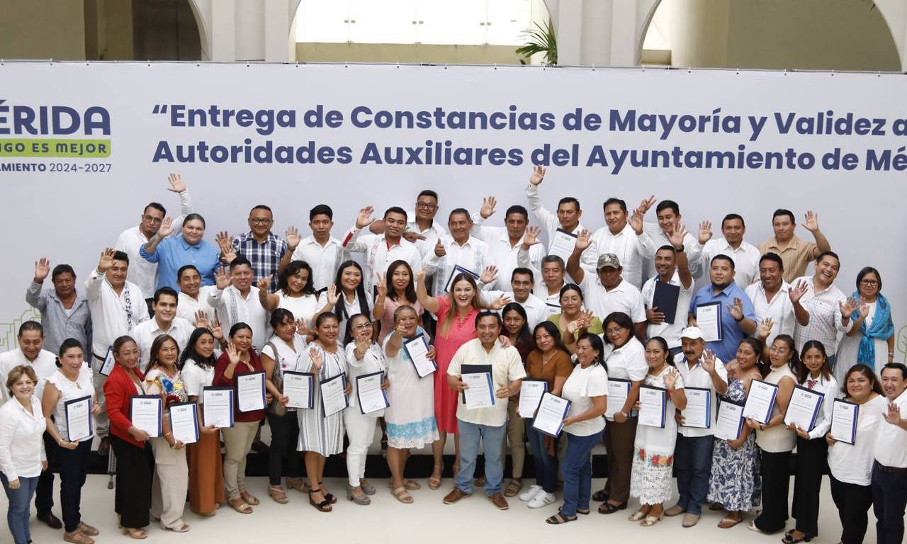 La Presidenta Municipal de Mérida, Cecilia Patrón Laviada, entregó las constancias de mayoría y validez a las nuevas autoridades auxiliares de 46 comisarías y subcomisarías del municipio, que fueron seleccionadas en un ejercicio democrático ejemplar y que trabajarán de la mano con el Ayuntamiento los próximos tres años.